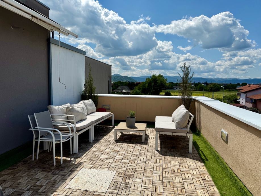 Terasa je poseban adut ovog stana, sa predivnim pogledom na okolicu, a idealna je za opuštanje, druženje, roštiljanje ili rad od kuće.