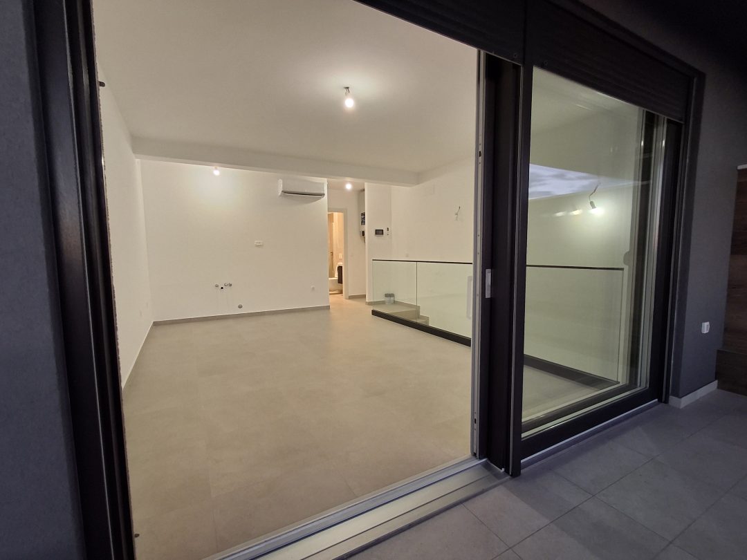 Stan koji je predmet ovog oglasa nalazi se na prvom i drugom katu urbane vile, a čine ga dvije stubištem povezane etaže. Prvu etažu čine ulazni prostor/hodnik, dnevni boravak sa kuhinjom i blagovaonicom otvorenog tipa, spavaća soba, kupaonica sa walk-in tušem i WC-om, gostinjski WC, stubište prema gornjoj etaži te manje spremište pod stubištem. Iz dnevnog boravka na prvoj etaži izlazi se na lijepu natkrivenu terasu veličine 9,40 m². Drugu etažu čini dnevni boravak sa mini kuhinjom, hodnik, spavaća soba i kupaonica sa walk-in tušem i WC-om te terasa od 20,67 m² na koju je smješten jacuzzi za četvero te ju krasi i prekrasan pogled na more. Dnevni boravak i prve i druge etaže orijentiran na jugo-zapad odlikuje puno dnevne svjetlosti, kako zbog orijentacije, tako i zbog velikih staklenih stijena. U cijenu ovog stana uključena su i dva parkirna mjesta koja mu pripadaju.