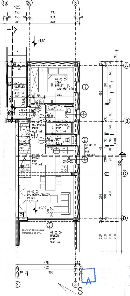 BALKON: 9,4 m² (po koeficijentu 0,5 obračunski 4,7 m²)