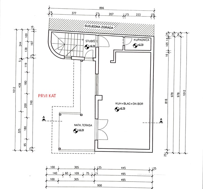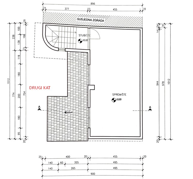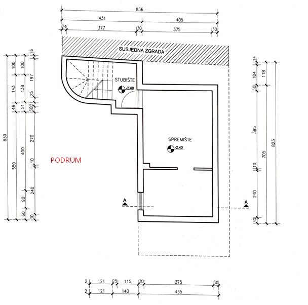 Kuća se proteže na 4 etaže – podrum, prizemlje, prvi i drugi kat i za potpuno je uređenje, što omogućuje raspored prema željama budućeg vlasnika.